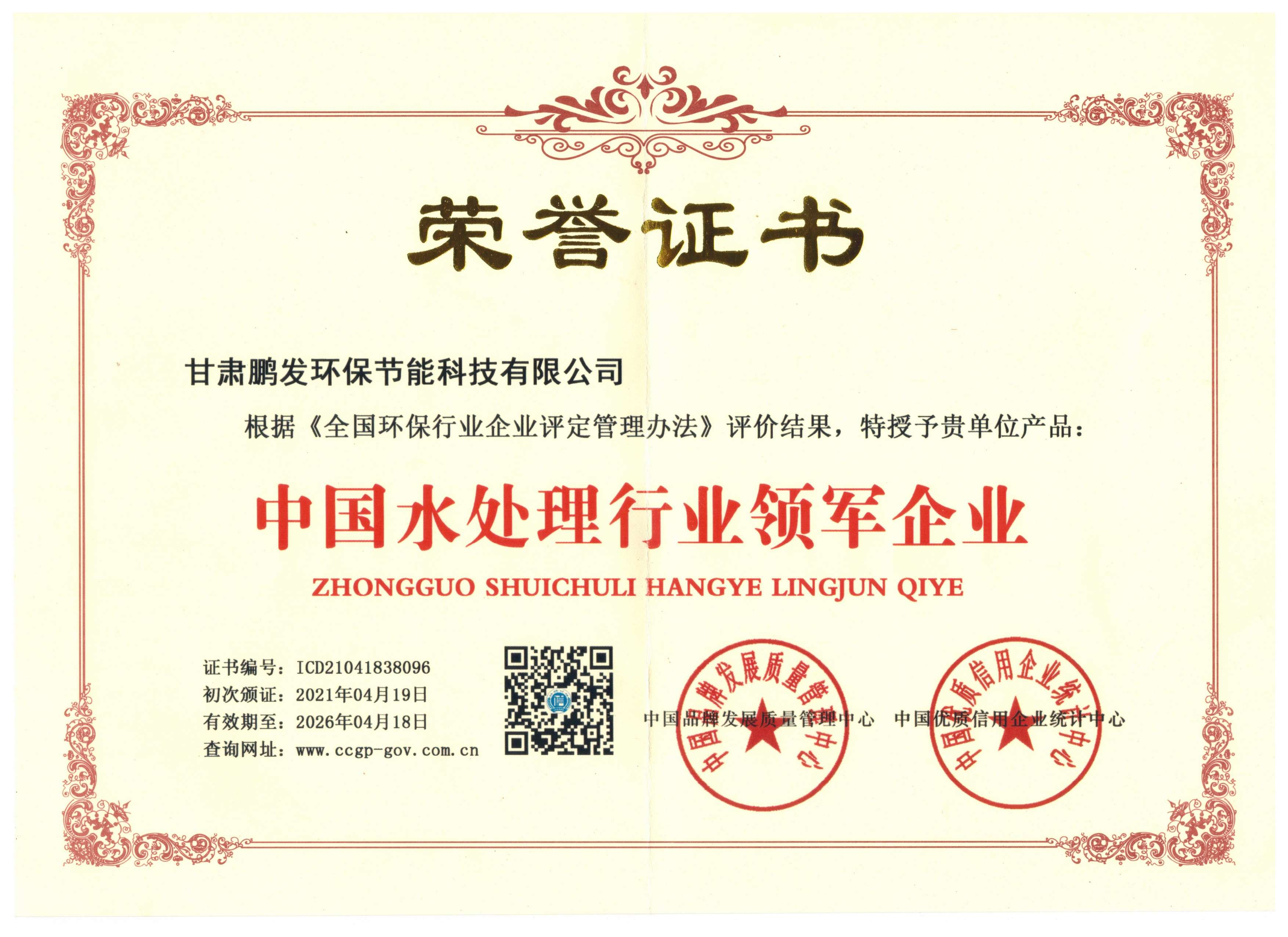 领军企业荣誉证书