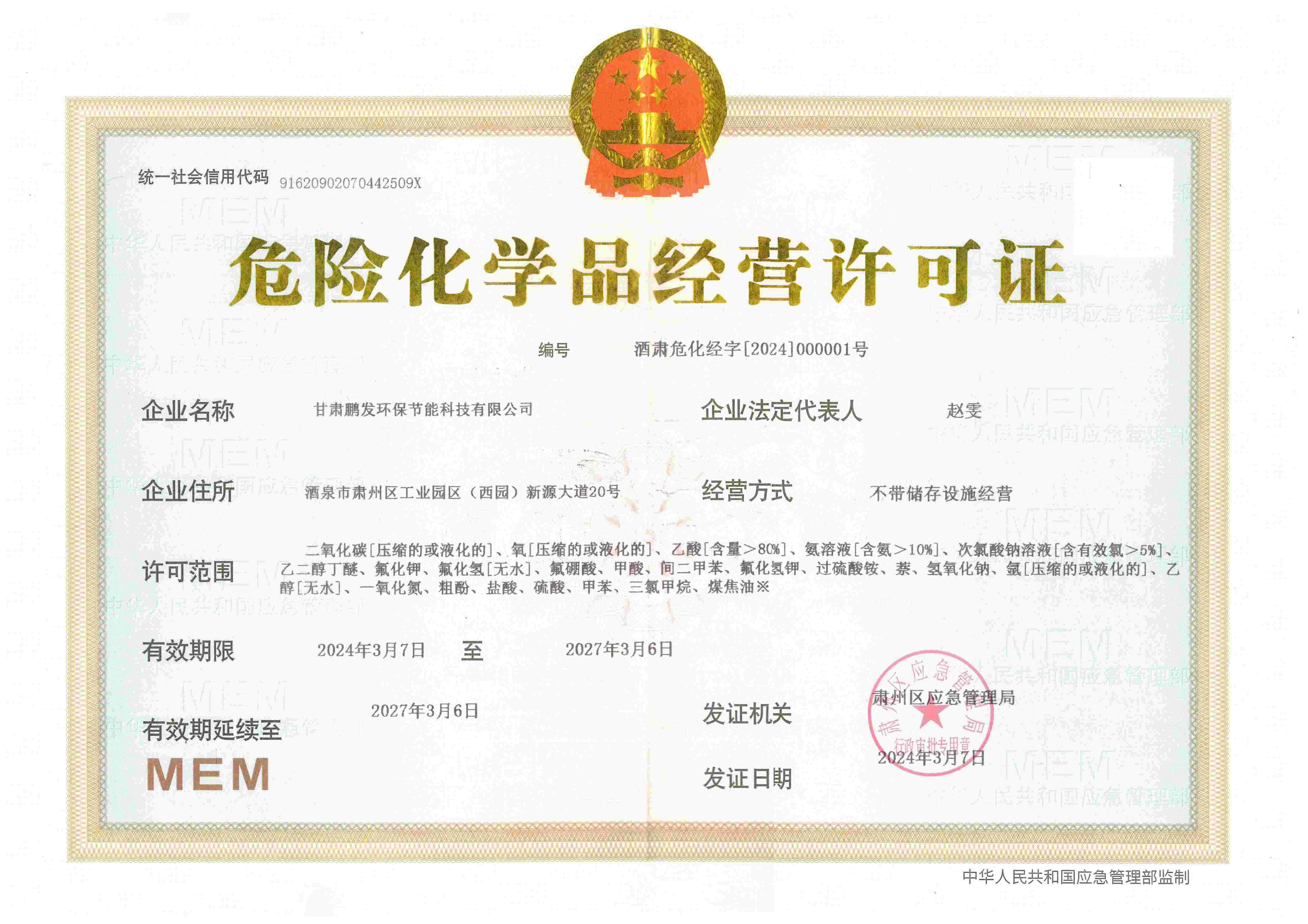 危险化学品经营许可证