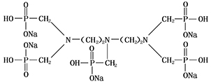 分子式:C9H23O15N3P5Na5 相对分子质量:683.2 结构式: 一、性能与用途 DTPMP·Na5是一种中性产品,DTPMP·Na5无毒,在水处理中用作循环冷却水和锅炉水的阻垢缓蚀剂。 DTPMP·Na5可用做过氧化物稳定剂、纺织印染用螯合剂、颜料的分散剂、化肥中微量元素携带剂、混凝土添加剂。此外,在造纸、电镀和化妆品等方面也得到了广泛应用。 二、技术指标