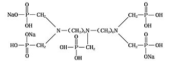 别名:二己烯三胺五亚甲基膦酸钠 分子式:C17H44-xO15N3P5Nax 相对分子质量:约731 结构式: 一、性能与用途 BHMTPH·PN(Nax)是高效的螯合型阻垢剂,对碳酸盐垢和硫酸盐垢具有良好的阻垢效果。在较宽的pH范围和120°C高温下有极佳的水溶性和热稳定性,对钙离子容忍度高。BHMTPH·PN(Nax)是油田水处理中的缓蚀阻垢剂,工业循环冷却水和锅炉水的阻垢缓蚀剂。 二、技术指标